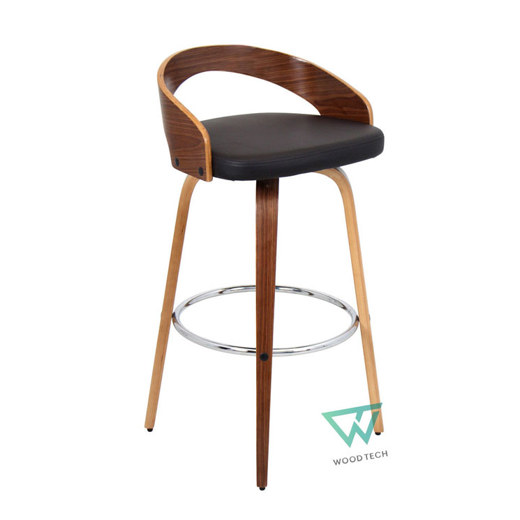 Thiết kế ghế bar gỗ óc chó với sự uốn cong tinh tế trong lưng ghế, 3 chân tròn như hình vòng cung tinh tế với thiết kế hiện đại như kết hợp ghế đệm có thể xoay 180 độ. Cùng với đó là thiết kế chỗ gác chân sáng bóng tạo phong cách thiết kế hiện đại đậm nét riêng trong mẫu ghế gỗ óc chó - ghế đẩu.