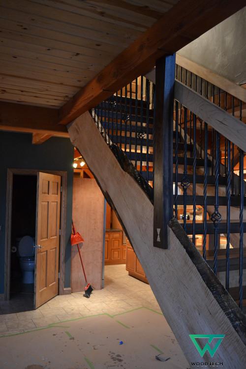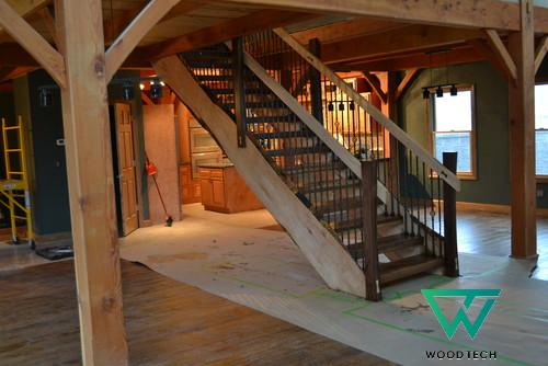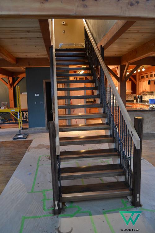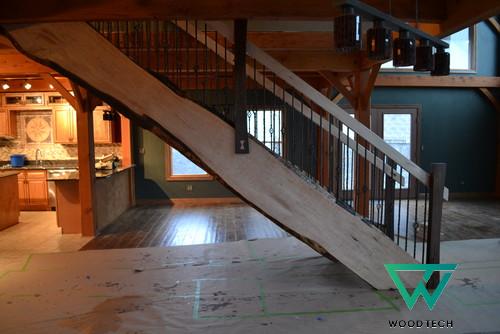 Cầu thang gỗ óc chó phong cách mộc mạc WT - 0003