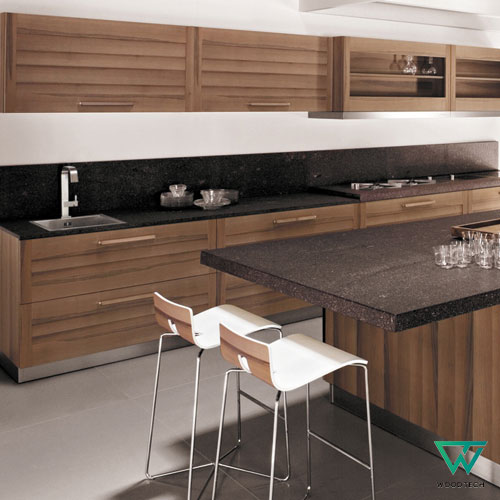 Chất liệu tủ bếp gỗ óc chó MH007 được khách hàng vô cùng ưng ý bởi thiết kế cũng như mẫu chất liệu vô cùng độc đáo, ấn tượng