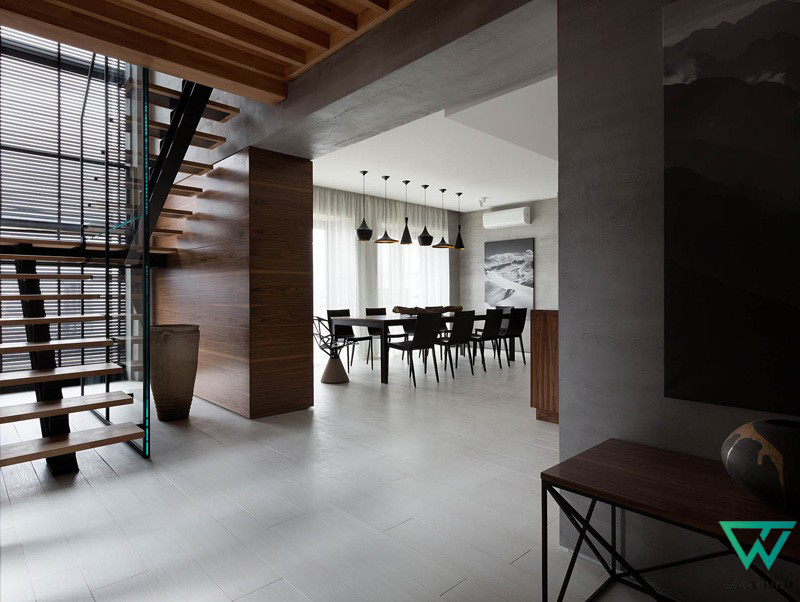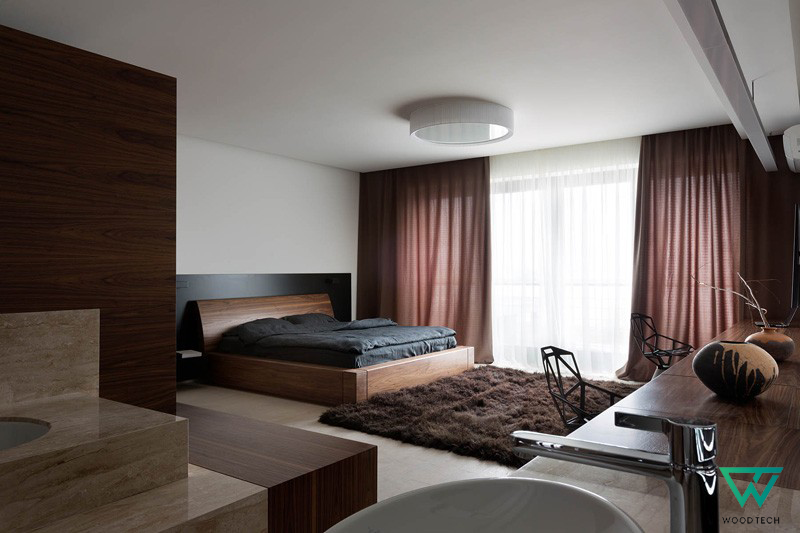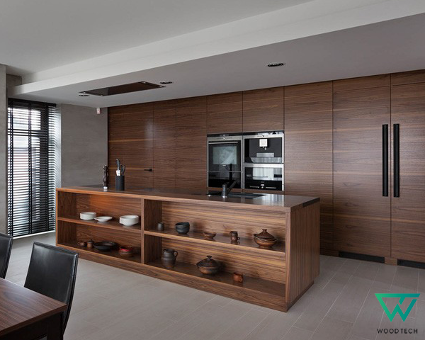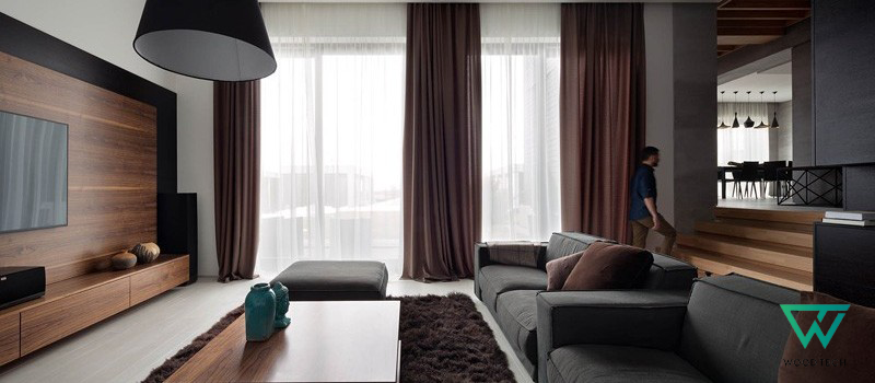 Với phác thảo không gian nội thất chủ đạo với gỗ óc chó: