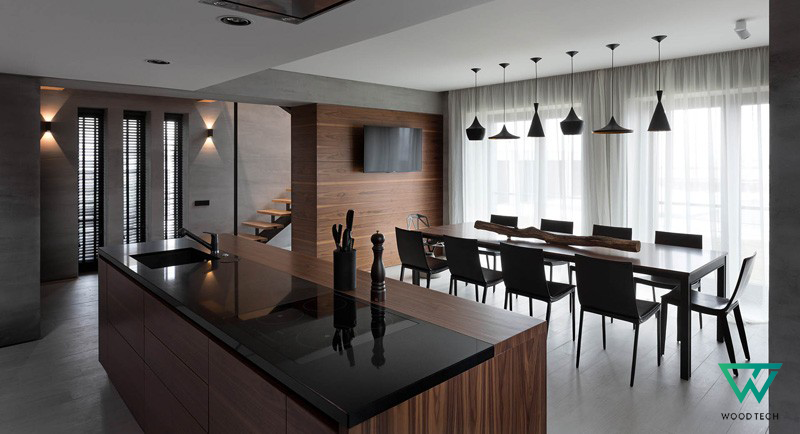 Nội thất gỗ óc chó sang trọng phong cách UKRAINE vô cùng thanh lich. Với ý tưởng sử dụng trần thạch cao cùng sự phối hợp các gam màu tạo nên họa tiết trầm, ấm áp mang lại cảm giác gần gũi cho các thành viên trong gia đình.