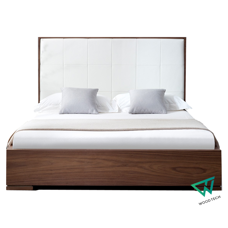 Giường ngủ gỗ óc chó trên bao gồm một khối gỗ óc chó với hình vuông ốp đầu giường tạo sự trang nhã cùng tấm nên giả da trắng sáng tạo nên sự thanh lịch ấn tượng. Các khung gỗ óc chó veneer tự nhiên tạo nên sự tương phản độc đáo ở đầu giường tạo nên phong cách hiện đại ngay từ những chi tiết đơn giản nhất. Bên cạnh đó là chất liệu gỗ cực bền vân gỗ xoắn tinh xảo cùng sự kết hợp của nệm trắng êm ái giúp bạn có cảm giác vô cùng thoải mái khi được sở hữu chiếc giường gỗ óc chó. Cùng với đó là thiết kế underbed giúp bạn có thể tiết kiệm không gian một cách hoàn hảo nhất.