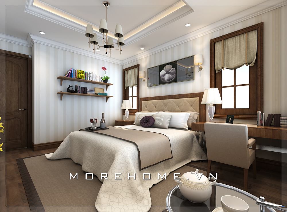 Mẫu giường ngủ tân cổ điển được thiết kế đơn giản không quá cầu kì vào từng chi tiết chỉ tập trung vào công năng đáp ứng được nhu cầu của gia chủ